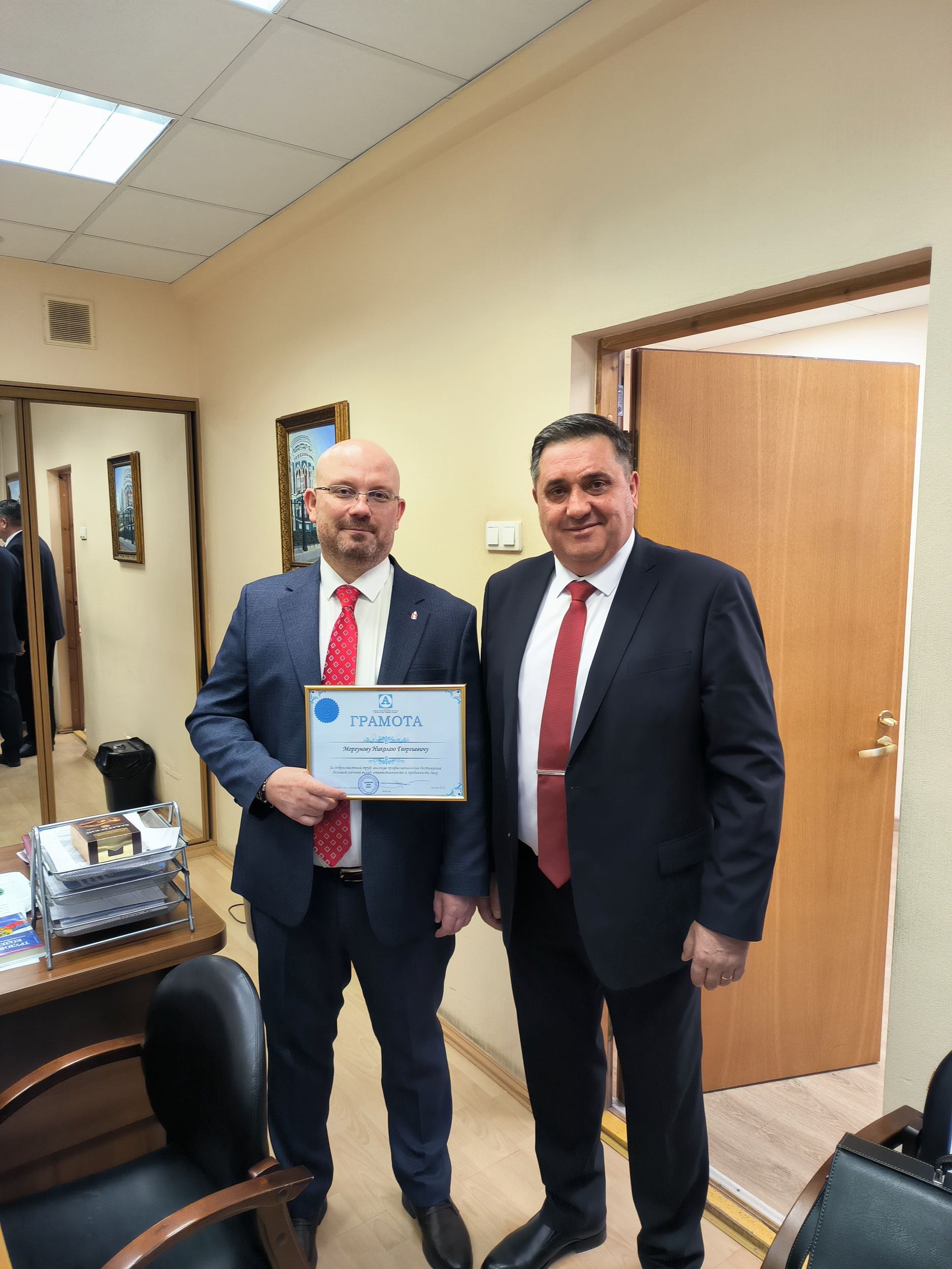 В ходе рабочей встречи Борис Лоран вручил Николаю Моргунову Грамоту Ассоциации «Единая транспортная система «Автобусные линии страны» за «Добросовестный труд, высокие профессиональные достижения, большой личный вклад и преданность делу».