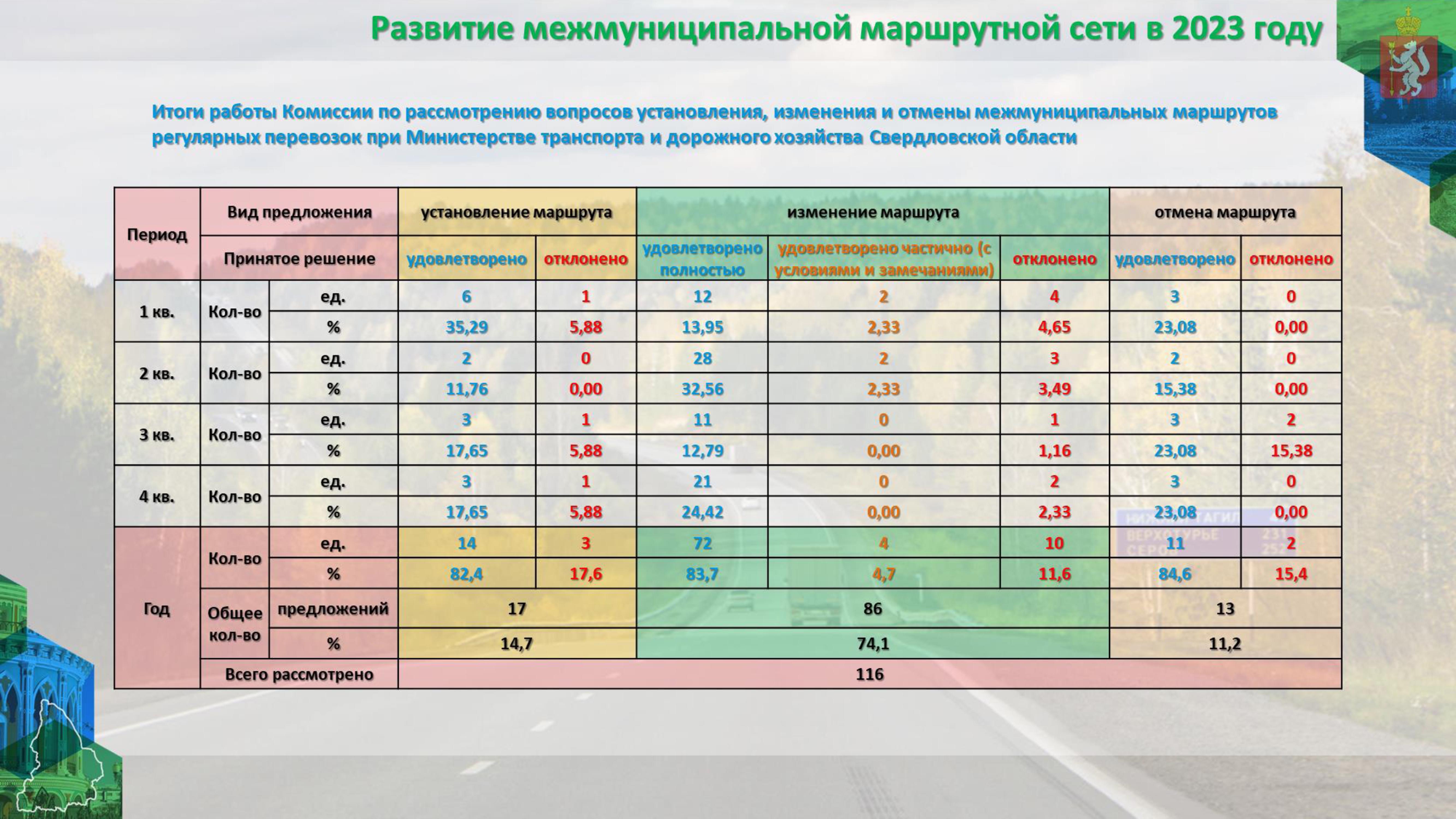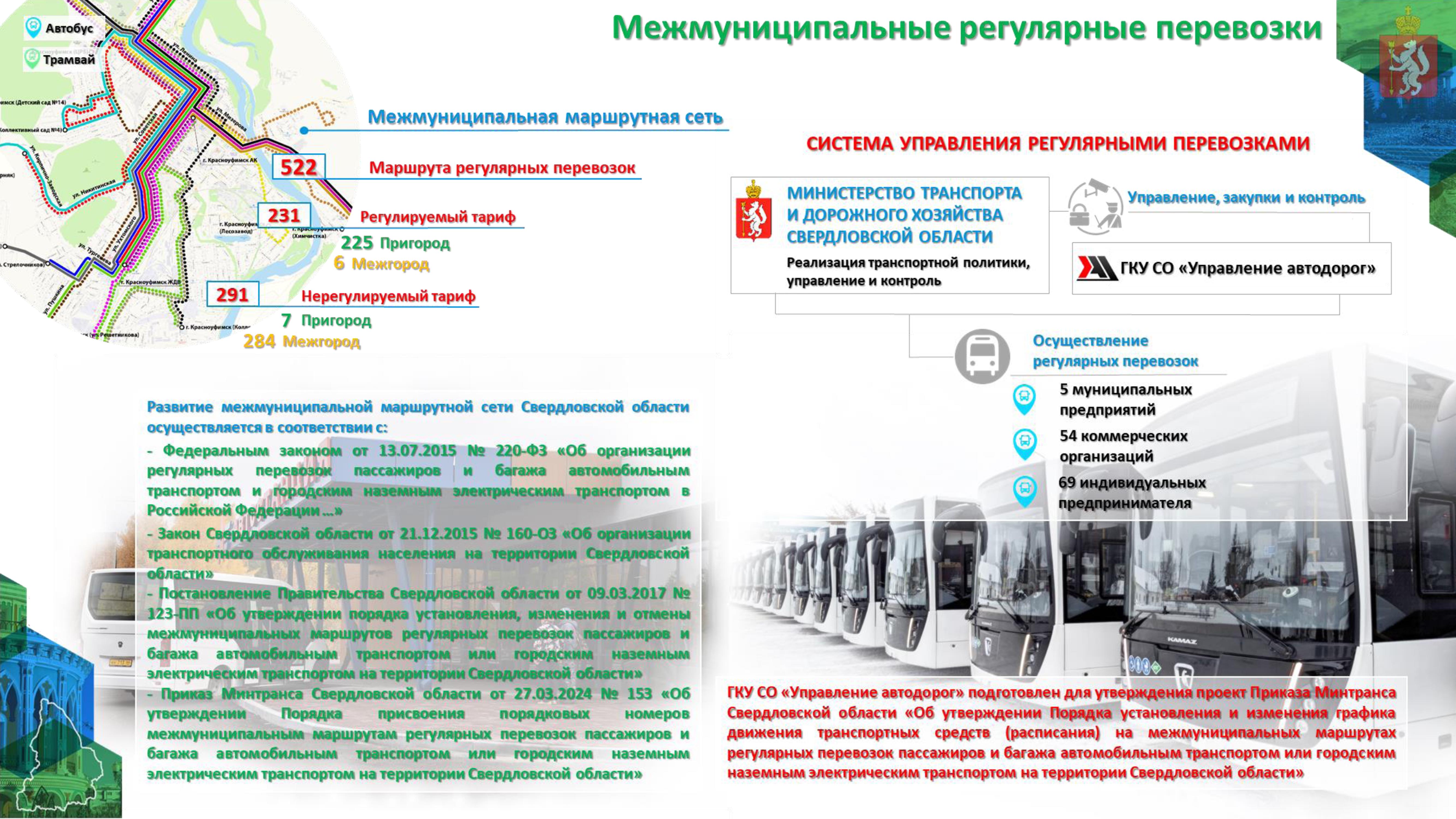 В соответствие с Порядком установления, изменения и отмены межмуниципальных маршрутов регулярных перевозок пассажиров и багажа автомобильным транспортом или городским наземным электрическим транспортом на территории Свердловской области, утвержденным Постановлением Правительства Свердловской области от 09.03.2017 №123-ПП (ред. от 07.04.2022) для решения вопросов о необходимости и (или) возможности установления, изменения или отмены межмуниципальных маршрутов регулярных перевозок при уполномоченном органе создана Комиссия по рассмотрению вопросов установления, изменения и отмены межмуниципальных маршрутов регулярных перевозок (далее - Комиссия).